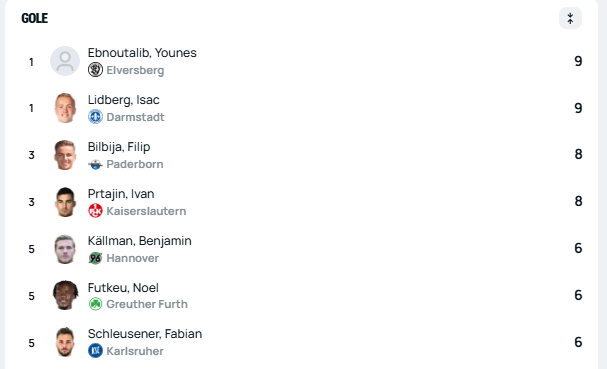 Dorobek strzelecki Fina przekłada się na jego wysokie miejsce w klasyfikacji strzelców 2. Bundesligi. Jest piąty, a więcej goli od niego mają tylko: Ebnoutalib, Lidberg, Bilbija i Prtajin. Lider klasyfikacji strzelców ma dziewięć goli, więc trzy więcej od Kallmana.