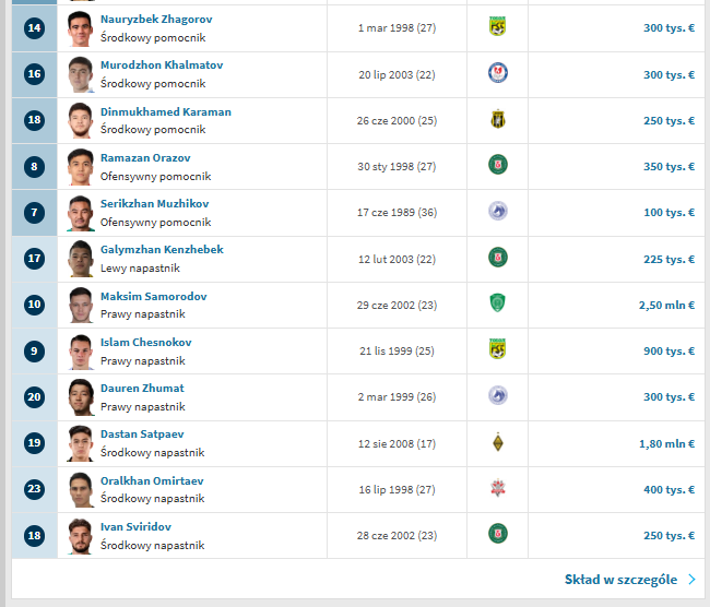 Ciekawą postacią jest także skrzydłowy Achmatu Grozny – Maksim Samorodow. Wcześniej 23-latek grał w FK Aktobe, a w barwach reprezentacji swojego kraju w 21 występach strzelił cztery bramki. Jego wartość rynkowa wyceniana jest również na 2,5 miliona euro. Z kolei przyszłością nowego zespołu Michała Probierza jest Dastan Satpaew. Mówimy o 17-letnim napastniku, który w marcu zadebiutował w swojej kadrze narodowej i ma na koncie już pięć występów. Choć na debiutanckiego gola czeka, to na pewno kibice i Probierz mogą wiązać z nim spore nadzieje.
