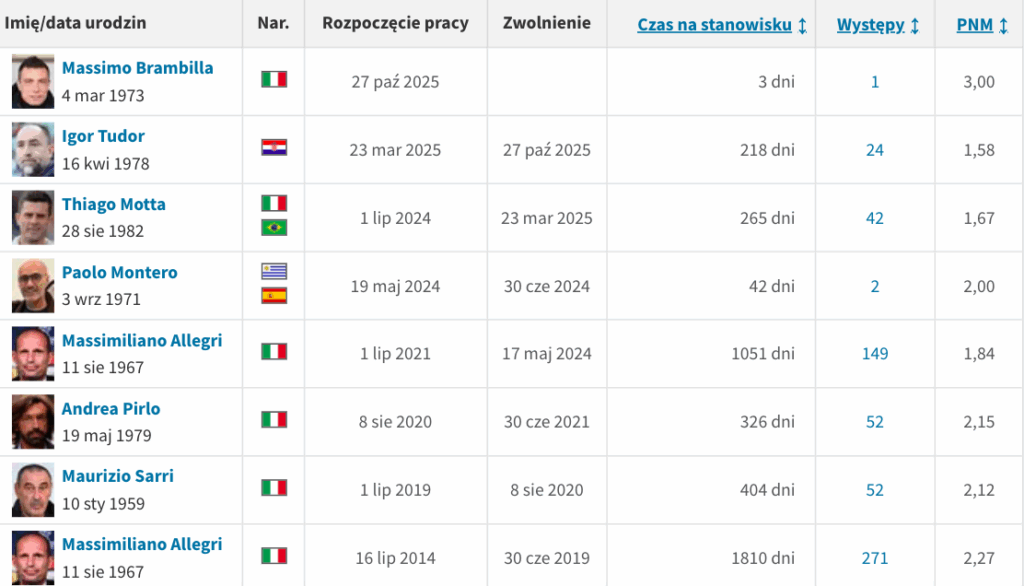Z perspektywy czasu część kibiców Juve mogło żałować być może przedwczesnego zwolnienia Sarriego, bo wszyscy jego następcy rozczarowali. A było ich kilku: