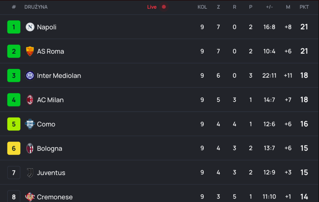 Całą tabele Serie A zobaczycie na „SuperScore„