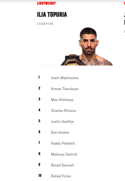 Trzecim Polakiem na listach rankingowych jest Marcin Tybura, ale choć należy do szerokiej czołówki wagi ciężkiej UFC już od kilku lat, to gdy tylko zbliża się do ścisłego topu, ponosi porażkę. We wrześniu gładko pokonał go Ante Delija. Tybura zajmuje 10. miejsce w rankingu, ale nie oszukujmy się: mistrzostwa już nie zdobędzie.