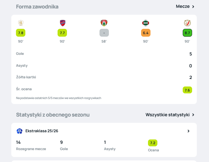 – Nie wiem, czy to najlepsza runda w mojej karierze, ale to nic nie zmienia. Ja zawsze pracuje tak samo. Najważniejsze są punkty i szatnia. My chcieliśmy wygrać już z Radomiakiem. Dzisiejsze trzy punkty bardzo cieszą. Tak samo jak moje bramki. Cieszę się, że pomogłem drużynie – dodał.