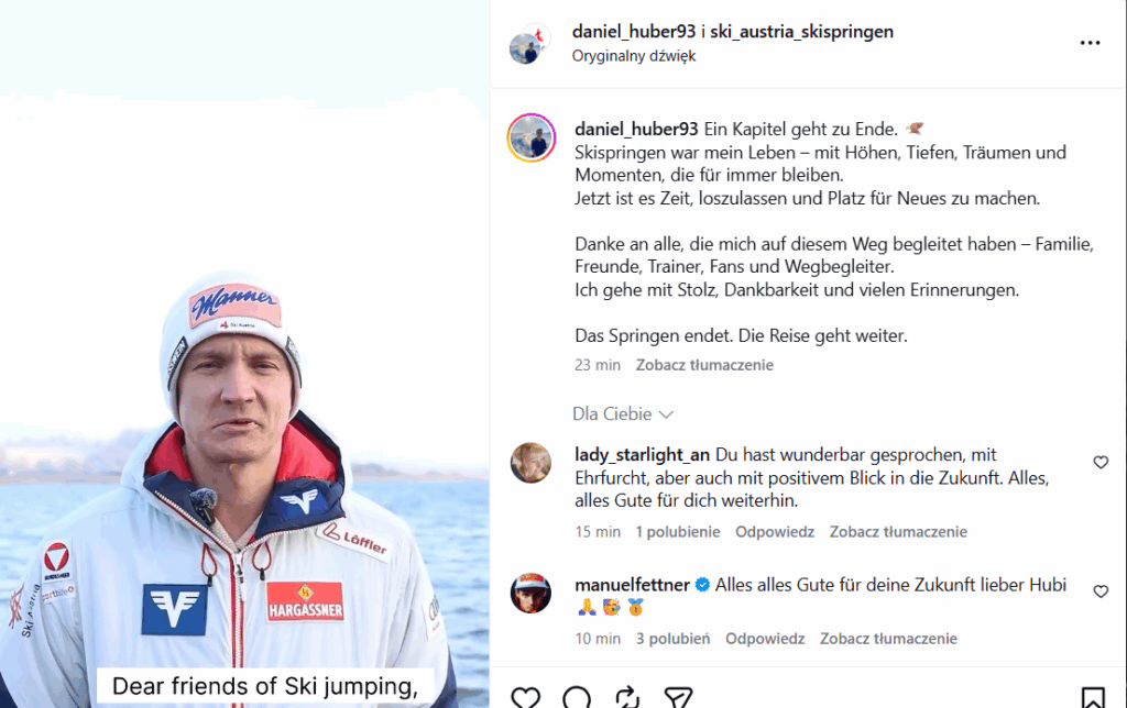 – Dziękuję wszystkim, którzy towarzyszyli mi na tej drodze. Rodzinie, przyjaciołom, trenerom, kibicom i współtowarzyszom drogi. Odchodzę z dumą, wdzięcznością i mnóstwem wspomnień. Skakanie się kończy. Podróż trwa dalej – dodał Austriak, który skończy 2 stycznia 33 lata.