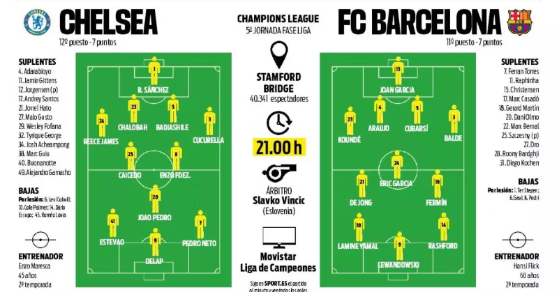 Pojedynek na Stamford Bridge pomiędzy Chelsea i FC Barcelona zapowiada się na jedno z najciekawszych starć w 5. kolejce fazy ligowej Ligi Mistrzów. Oba zespoły mają na koncie po siedem punktów i plasują się w łącznej tabeli odpowiednio na 11. i 12. miejscu.