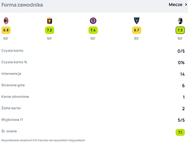 Forma zawodnika dostarczona przez Superscore