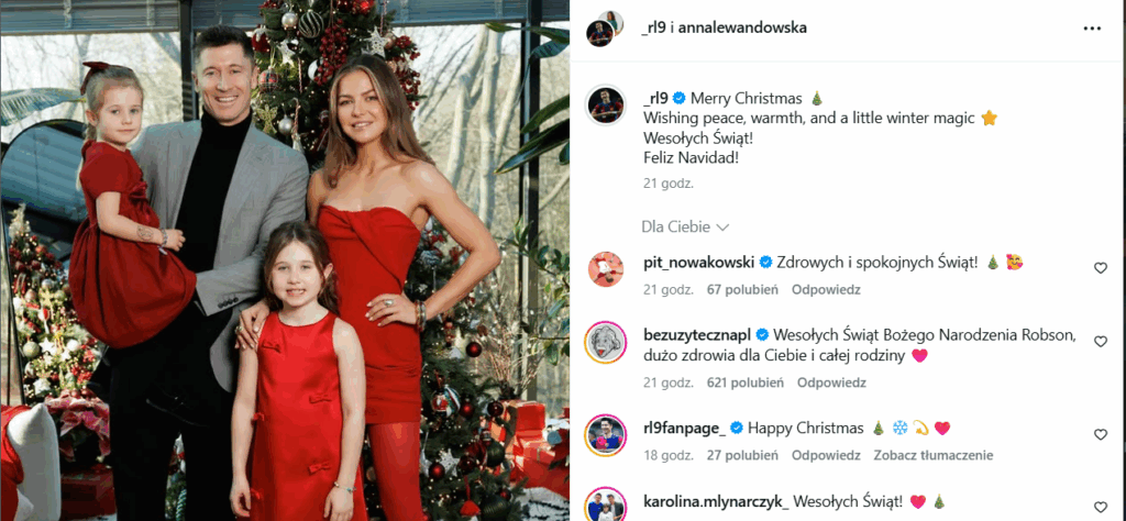 Na rodzinną atmosferę postawił także Robert Lewandowski, który spędził Wigilię z żoną Anną i córkami.