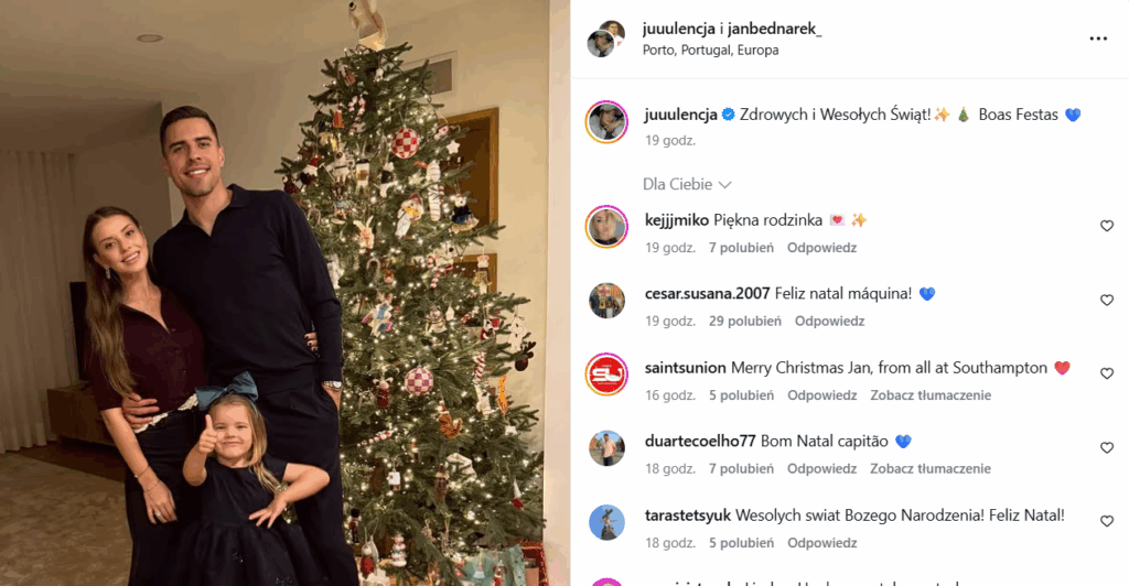 Z żoną i córką w Porto święta spędza z kolei Jan Bednarek. Już w poniedziałek 29 grudnia jego FC Porto zagra kolejny mecz!