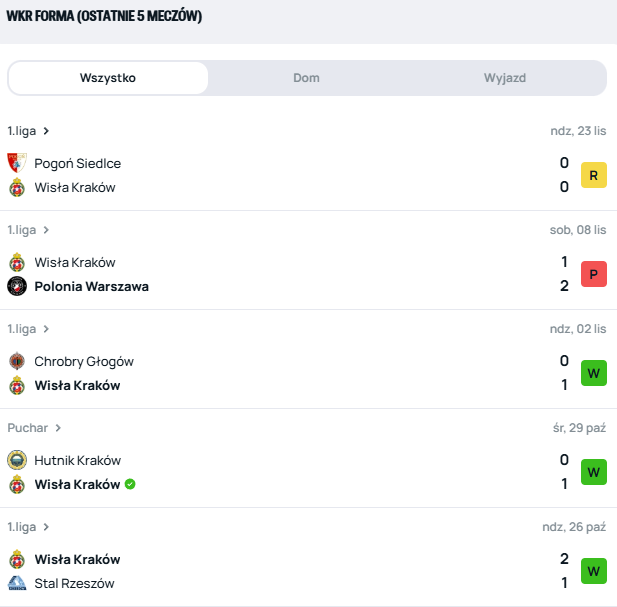Rzecz w tym, że lider rozgrywek musi wrócić do formy z początku sezonu 2025/26. Tuż przed listopadową przerwą reprezentacyjną Wisła poniosła pierwszą porażkę na własnym terenie. Na stadionie przy ul. Reymonta lepsza okazała się Polonia Warszawa (1:2). Z kolei w minionej kolejce Betclic 1. Ligi ekipa z Krakowa podzieliła się punktami z Pogonią Siedlce (0:0).