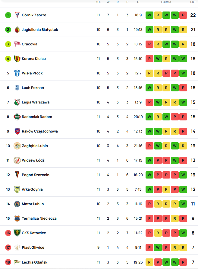 Wojskowi zajmują aktualnie siódme miejsce tabeli Ekstraklasy z bilansem czterech zwycięstw, trzech remisów i trzech porażek. Ostatnie porażki z Samsunsporem (0:1) w Lidze Konferencji i Górnikiem Zabrze (1:3) w lidze wygenerowały sporo zamieszania w stołecznym klubie. Okazja do zrehabilitowania się przyjdzie w niedzielę, gdy Legia Warszawa zmierzy się na wyjeździe z Zagłębiem Lubin (19.10).