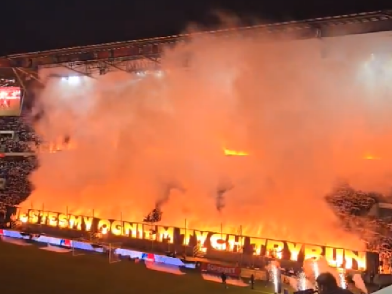 Efektowna oprawa kibiców Górnika Zabrze! „Jesteśmy ogniem tych trybun” [WIDEO]