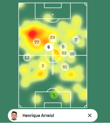Był także bardzo aktywny w destrukcji – mowa o pięciu odbiorach, trzech przechwytach, trzech wybiciach i aż jedenastu wygranych pojedynkach z rywalami. Nie brakowało w jego grze agresywności – zanotował cztery faule, choć szczęśliwie dla niego nie zobaczył za nie żółtej kartki. Choć Legia Warszawa zremisowała ostatecznie 1:1, to akurat Henrique Arreiol może być zadowolony ze swojego występu.