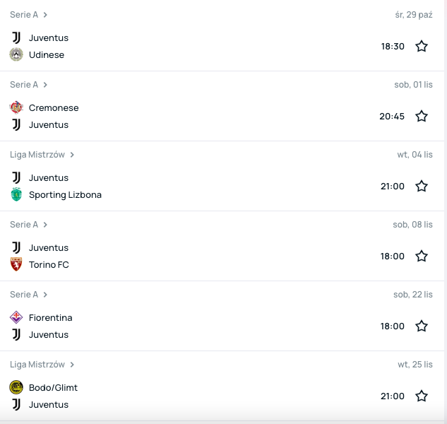 Terminarz Juventusu dostarcza „SuperScore„
