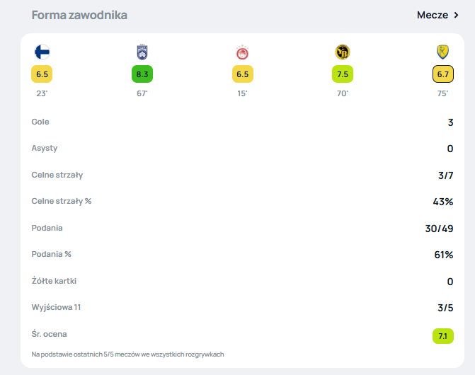 Karol Świderski w dwóch ostatnich meczach reprezentacji Polski był zmiennikiem. Spędził na boisku 26 minut w meczu z Holendrami oraz 22 minuty w meczu z Finlandią. Nie strzelił gola ani nie zanotował asysty. Po powrocie ze zgrupowania do klubu błysnął formą! Ustrzelił dublet w meczu Panathinaikosu z AE Kifisią. Tydzień temu zdobył też gola w Lidze Europy w meczu z Young Boys Berno. W drugim meczu europejskich rozgrywek ponownie wpisał się na listę strzelców!