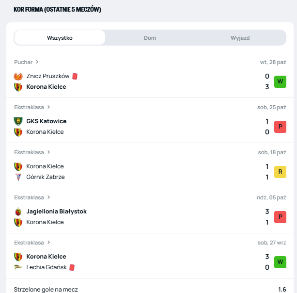 Korona Kielce bardzo dobrze weszła w sezon 2025/26 i przez moment nazywana była rewelacją rozgrywek. Było to adekwatne określenie – kielczanie plasowali się nawet na podium rozgrywek. Mecz z Piastem jest jednak czwartym meczem ligowym z rzędu Korony bez zwycięstwa. Ostatnią wygraną zespół Jacka Zielińskiego odniósł 27 września, pokonując Lechię Gdańsk. Aktualnie w tabeli Korona jest piąta. Past wciąż plasuje się na ostatnim miejscu.