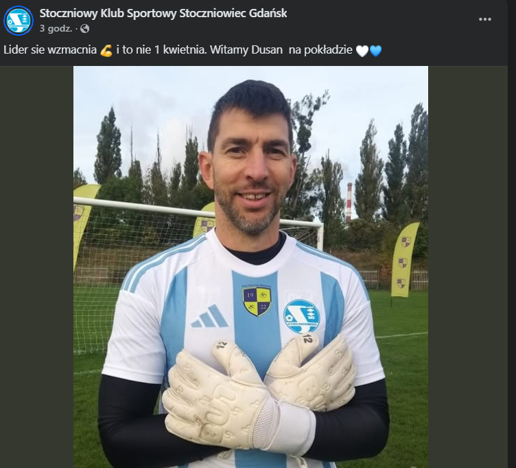Stoczniowiec Gdańsk to zespół, który na co dzień gra w klasie okręgowej. Po 10 meczach ekipa ze stolicy województwa pomorskiego zajmuje pierwsze miejsce w tabeli grupy Gdańsk I. Dusan Kuciak będzie mógł zadebiutować w nowych barwach już w sobotę. Stoczniowiec zagra na wyjeździe z KS Chwaszczyno.