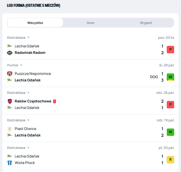 Lechia w sobotę 8 listopada o 14:45 zagra u siebie z Widzewem Łódź.