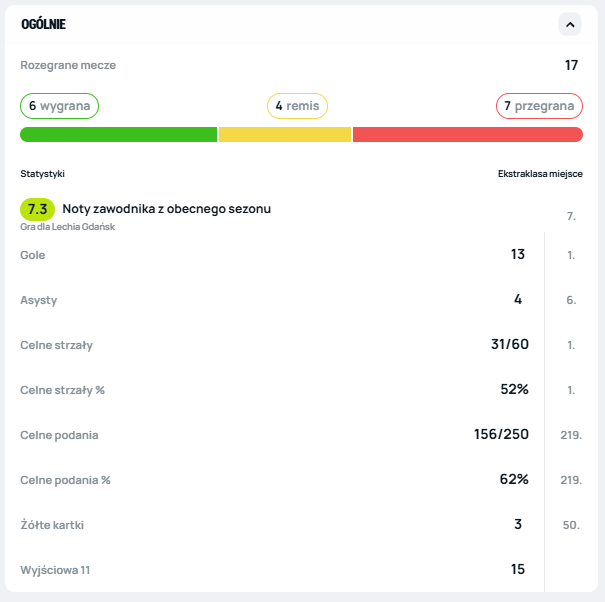 Lechia Gdańsk ma za sobą solidną jesienną rundę PKO BP Ekstraklasy. Obecnie dorobkiem 20 punktów zajmuje 13. miejsce w tabeli, a gdyby nie odjęte pięć punktów przed rozpoczęciem rozgrywek, zespół prowadzony przez Johna Carvera plasowałby się na dziewiątej pozycji.
