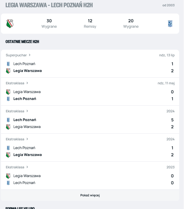 Mecze Legii z Lechem zawsze dostarczają wiele emocji. W ostatnim starciu między tymi zespołami w Superpucharze Polski Legia wygrała 2:1 z mistrzami Polski. Wcześniej w maju Lech wygrał 1:0. Niedzielny mecz przy Łazienkowskiej zapowiada się niezwykle pasjonująco.