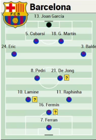 Hiszpańskie media przewidują, że Robert Lewandowski rozpocznie to spotkanie od pierwszych minut. Kataloński „Sport” w swoich przewidywanych składach umieścił Polaka w ofensywnym tercecie obok Lamine Yamala i Raphinhii. Podobnie widzi to „Marca”, która zamiast Brazylijczyka wstawiła Marcusa Rashforda.