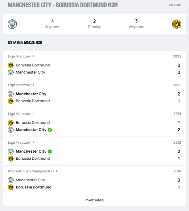 Po raz ostatni oba zespoły spotkały się w 2022 roku i wówczas padł remis 0:0. Teraz i City i BVB grają bardzo ofensywnie, co zwiastuje wiele bramek!