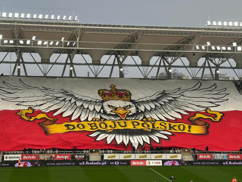 Oprawa, która w listopadzie nie pojawiła się na PGE Narodowym podczas meczu Polska – Holandia, w końcu została oficjalnie zaprezentowana. W niedzielę podczas ligowego meczu Betclic 1. Ligi między ŁKS-em Łódź a Wisłą Kraków, łódzcy ultrasi zaprezentowali sektorówkę, której służby nie wpuścili na mecz z Holendrami.