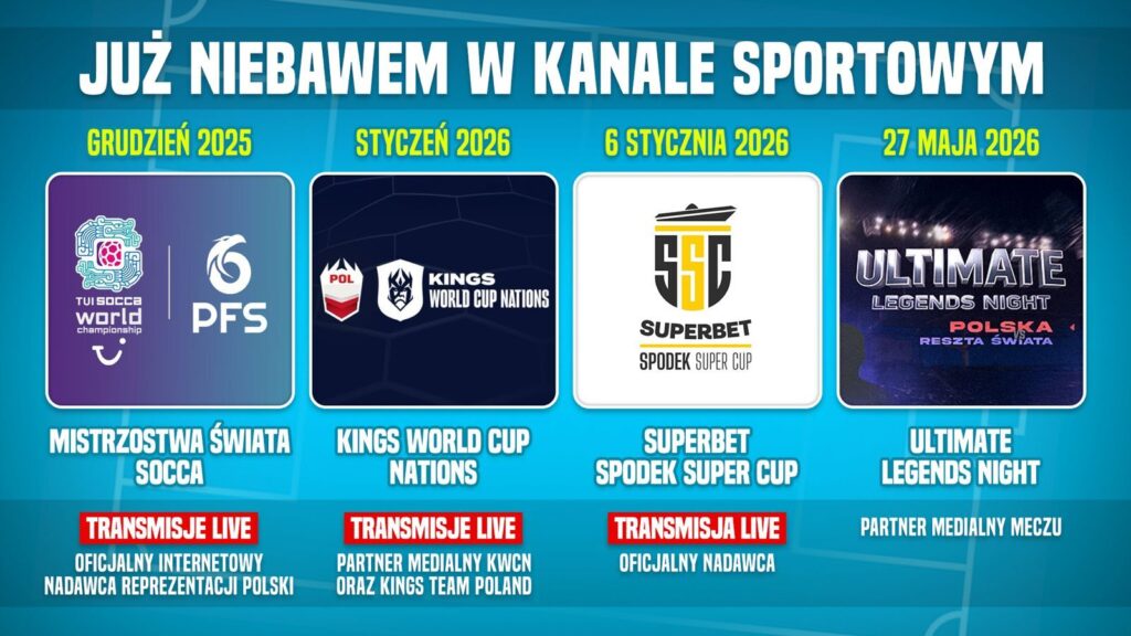 Na tym jednak nie koniec. W styczniu na antenie Kanału Sportowego będzie można zobaczyć także Kings World Cup Nations, czyli mistrzostwa świata w siedmioosobowej piłce nożnej. Turniej organizuje Gerard Pique i jego Kings League. Co więcej, 6 stycznia pokażemy kolejną edycję katowickiego turnieju Superbet Spodek Super Cup jako oficjalny nadawca.