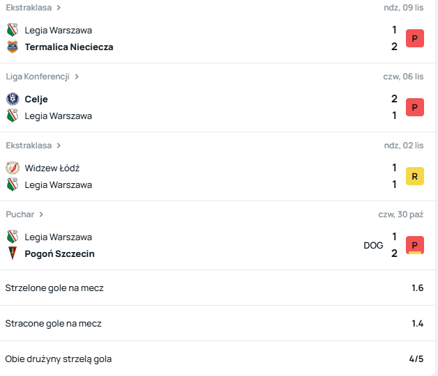 Legia Warszawa wciąż czeka na następcę Edwarda Iordanescu, który pożegnał się z klubem pod koniec października. Po porażce z Pogonią Szczecin w Pucharze Polski drużynę przejął Inaki Astiz. Bilans legionistów pod wodzą Hiszpana to jeden remis i dwie porażki.