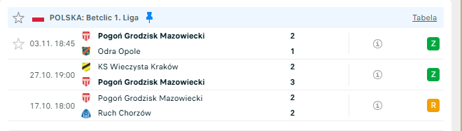 Po zwycięstwie ze Zniczem nadszedł mini kryzys. Kolejne cztery mecze to dwa remisy i dwie porażki zespołu z Grodziska. 19 września Pogoń rozpoczęła kapitalną serię w Betclic 1. Lidze, która trwa do dziś. W sześciu ostatnich spotkaniach ligowych zespół jest niepokonany! Podopieczni Piotra Stokowca wygrali pięć spotkań i jedno zremisowali. Kolejny triumf odnieśli w poniedziałek 3 listopada nad Odrą Opole (2:1). Gol na wagę zwycięstwa padł w doliczonym czasie gry.