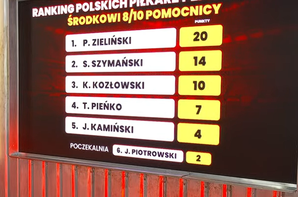 Pomocnik Interu wyprzedził Sebastiana Szymańskiego, który prawdopoodobnie niebawem zmieni klub. Artur Wichniarek podkreślił, że zmiana klubu Szymańskiego jest ważna w tym momencie. W Turcji gra mało. Trzecie miejsce w rankingu zajął Kacper Kozłowski, a w czołowej piątce znaleźli się też Tomasz Pieńko i Jakub Kamiński.