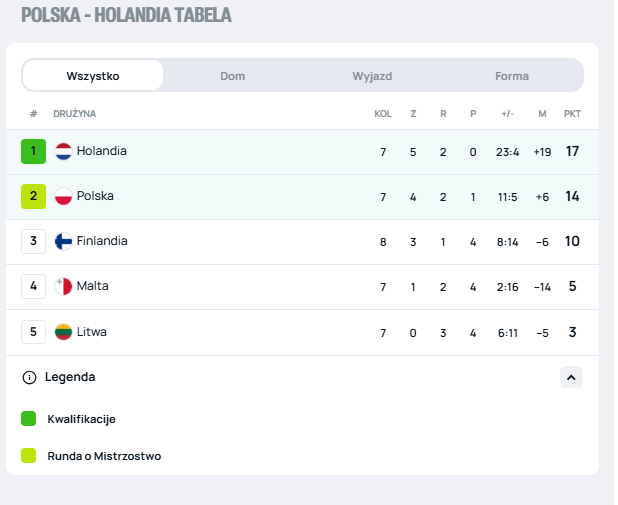 Scenariusz, że Polska zajmie pierwsze miejsce należy traktować w kategoriach fantastyki. Nie dość, że musielibyśmy wygrać bardzo wysoko z Maltą, to jeszcze Holendrzy musieliby bardzo wysoko przegrać z Litwą. Przykładowo: Polska wygrywa 10:0 z Maltą, a Holandia przegrywa 0:4. Wówczas awans mają Biało-Czerwoni. To wydaje się niemal nieprawdopodobne.