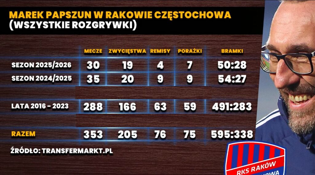 Na razie Papszun wciąż jest jednak trenerem Rakowa, który po 17 kolejkach Ekstraklasy ma 29 punktów, czyli tylko punkt mniej od Wisły Płock, lidera. Zespół z Częstochowy ma jednak do rozegrania w niedzielę mecz z Zagłębiem Lubin, więc może zostać liderem. Temat Rakowa został poruszony w „Loży Piłkarskiej”.