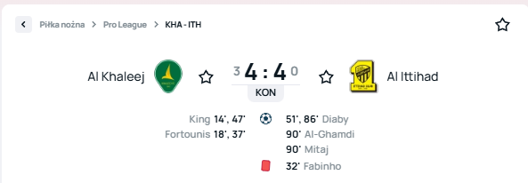 Wszystkie znaki na niebie wskazywały więc, że mistrzowie Arabii Saudyjskiej polegną z kretesem w tym spotkaniu. Po stracie czwartej bramki ruszyli jednak do odrabiania strat, a sygnał do ataku dał Moussa Diaby, który w 51. minucie trafił na 4:1.