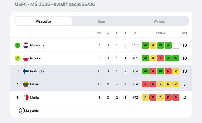 Do końca meczu wynik nie uległ już zmianie i Finowie wygrali 2:1. To oznacza, że mają obecnie 10 punktów w tabeli – tyle samo co Polacy. Biało-Czerwoni mają jednak rozegrany jeden mecz mniej – w niedzielę zmierzą się z Litwinami. Finowie wciąż pozostają w grze o baraże.