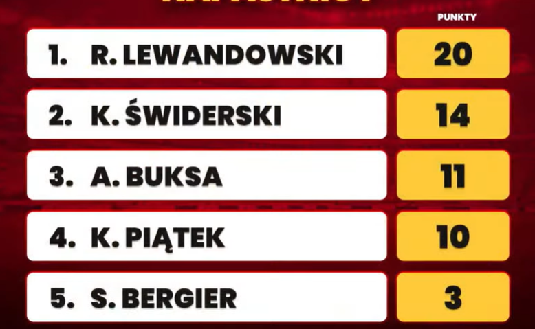 Lewandowski podobnie jak przed rokiem został wybrany przez ekspertów Kanału Sportowego najlepszym napastnikiem. Wygrał z kompletem 20 punktów. Wyprzedził Karola Świderskiego, Adama Buksę, Krzysztofa Piątka oraz Sebastiana Bergiera, który goni Tomasa Bobcka w klasyfikacji strzelców Ekstraklasy.