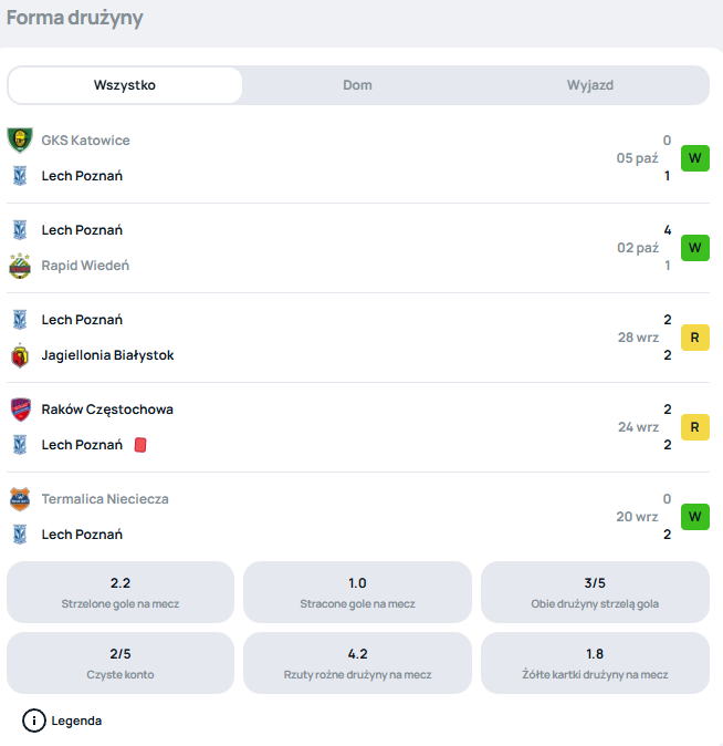 Lech Poznań traci cztery punkty do Górnika Zabrze w tabeli PKO BP Ekstraklasy. Po 10 meczach “Kolejorz” ma na swoim koncie 18 “oczek”. Choć podopieczni Nielsa Frederiksena rywalizowali o Ligę Mistrzów i Ligę Europy, ostatecznie dostali się do Ligi Konferencji. W pierwszym meczu fazy ligowej nie dali większych szans Rapidowi Wiedeń. Po efektownej wygranej zajmują trzecie miejsce w tabeli.