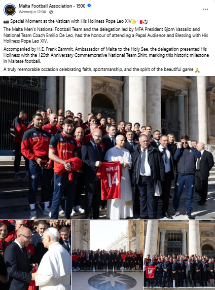 Tuż przed wylotem do Helsinek, maltańska reprezentacja zatrzymała się w Watykanie, gdzie spotkała się papieżem Leonem XIV. Miało to związek ze 125. rocznicą powstania piłkarskiej federacji na Malcie.