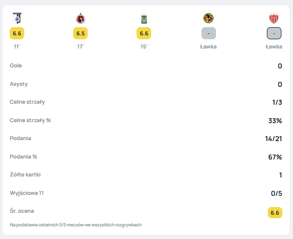 W obecnym sezonie Mateusz Bogusz rozegrał 13 meczów we wszystkich rozgrywkach. Jego bilans to zaledwie dwie asysty.