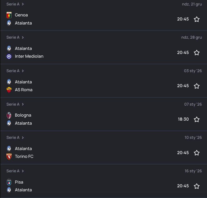 Terminarz Atalanty dostarcza „SuperScore„
