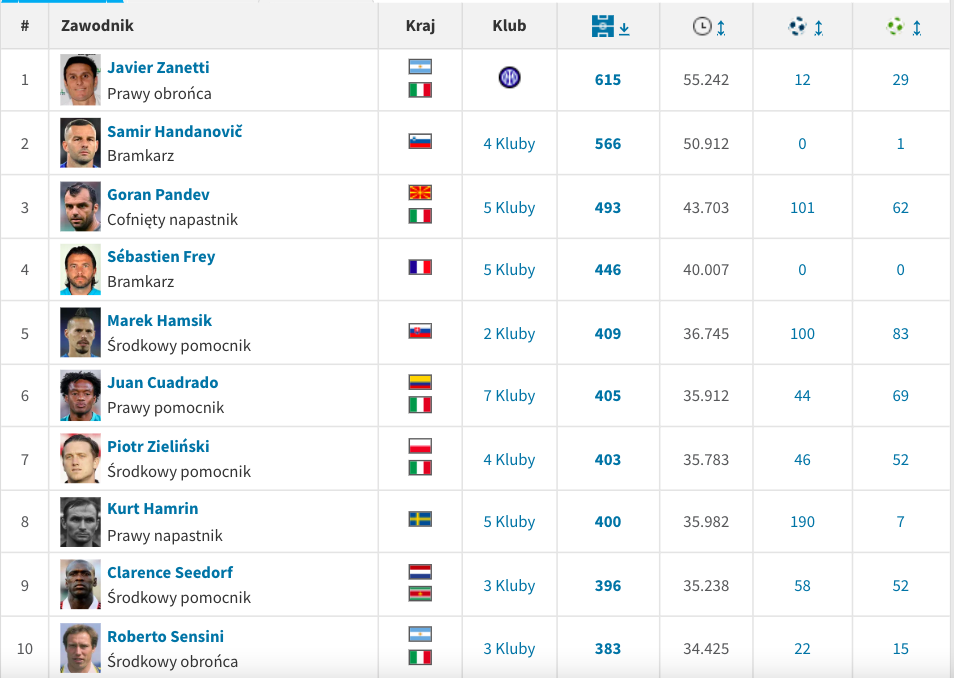 ”Kibicom pozostaje wierzyć, że za kilka lat Zieliński będzie legendą nie tylko Napoli, ale i Interu, bo w Włoszech to się wcale nie wyklucza. Andrea Pirlo grał w Interze, Milanie oraz Juventusie, a kibice dwóch ostatnich klubów mają go za bohatera. Nie mam jednak zamiaru porównywać Pirlo do Zielińskiego, bo Polak nigdy nie dorówna Włochowi. Można jednak mieć nadzieje, że za kilka lat z czystym sumieniem będzie można napisać, że Piotr Zieliński to legenda nie tylko Napoli, ale i całej Serie A” – pisałem latem 2024 roku. Dziś 31-letni pomocnik ma już na koncie 403 mecze w lidze włoskiej. Tylko sześciu zagranicznych piłkarzy wykręciło lepszy wynik.