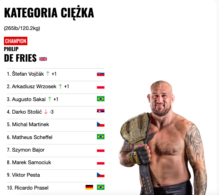 Jeżeli Szpilka wygra z Martinkiem, to wskoczy do rankingu TOP 10 i przy dobrych wiatrach będzie mógł ubiegać się o rewanż z Wrzoskiem, który kilka miesięcy temu gładko przegrał z mistrzem Philem De Friesem. Obecny mistrz królewskiej dywizji już w sobotę będzie bronił pasa przed Stefanem Vojcakiem.