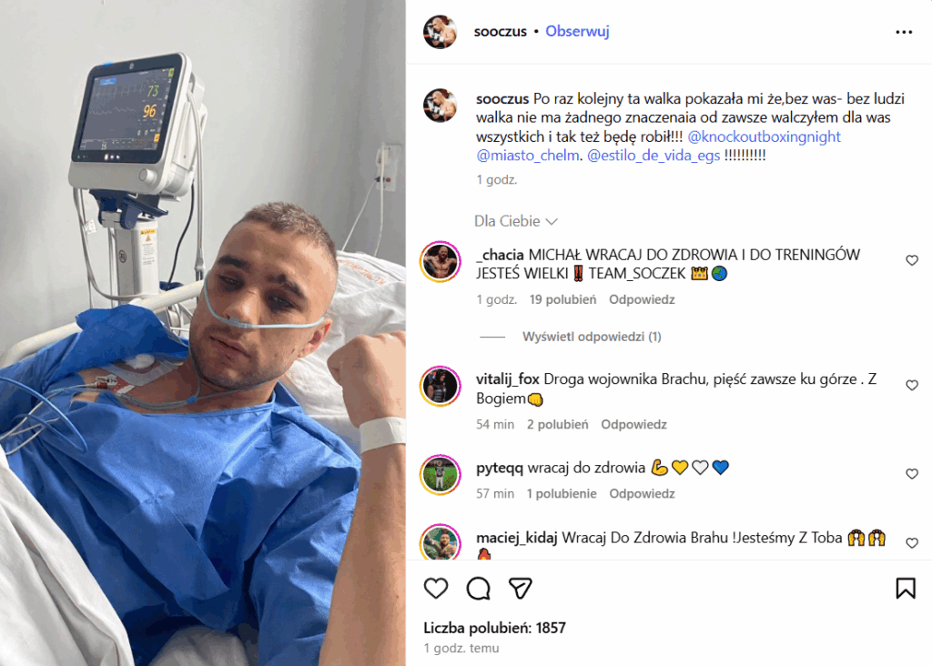 Choć polski pięściarz odzyskał przytomność w karetce, dwa dni później ujawniono, że lekarze wprowadzili go w stan śpiączki farmakologicznej. Z kolei w poniedziałek rodzina Soczyńskiego poinformowała, że bokser został już wybudzony. Sam zainteresowany zabrał głos za pośrednictwem Instagrama.